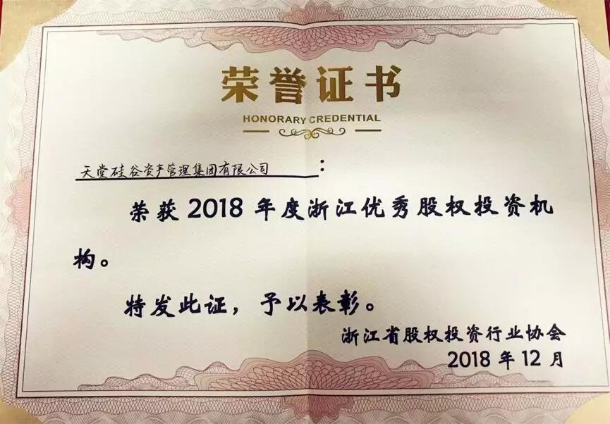 12月20日,2018年度會員大會暨“攜手譜新篇”浙江股權投資行業高峰論壇在新僑飯店隆重舉行。天堂硅谷憑借2018年在投資領域的優異成績,以及對助力實體經濟發展做出的貢獻榮膺優秀投資機構榮譽稱號。